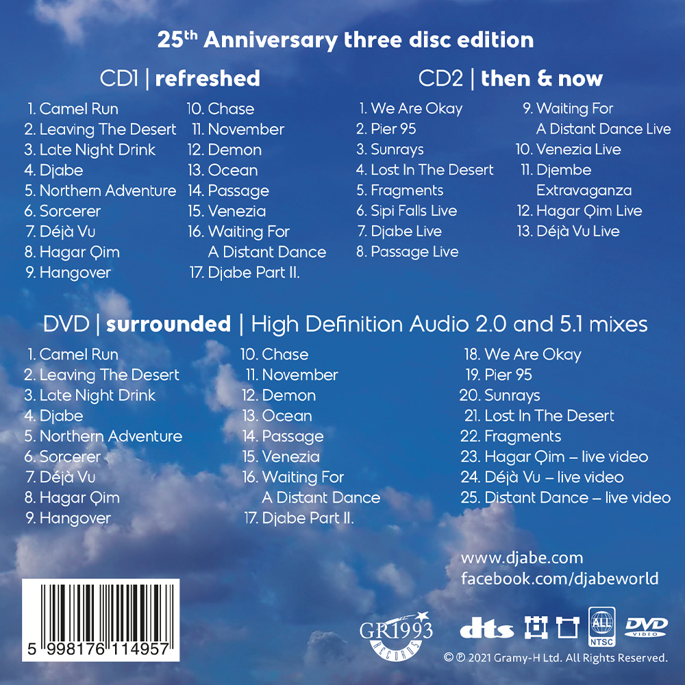 A harmadik korong DVD, melyen a teljes eredeti album és a régi-új számok 24bit/96kHz nagyfelbontású sztereó, valamint 24/96 DTS surround változatai kaptak helyet. A lemezt három koncert videó felvétel zárja a Djabe20 koncertből. A már említetteken kívül a Distant Dance az utolsó a DVD-n. Ez nem szerepel a 2-es CD-n.