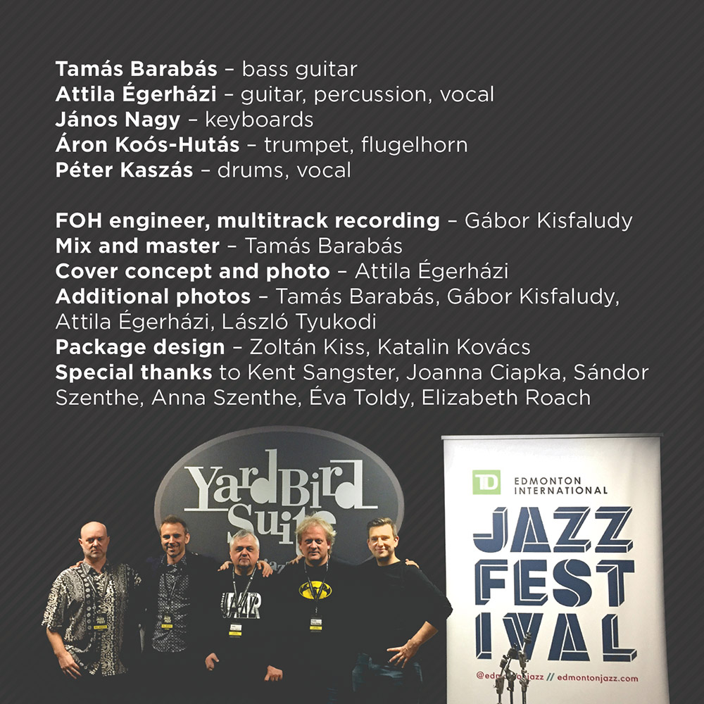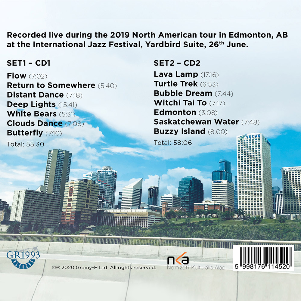 In 2019 the band went on an North-American tour to play single live shows and perform at festivals. Some of the highlights of this tour is the full house show in the Kennedy Center in Washington, DC, the 8th performance at the Rochester International Jazzfest (one of the 10 largest jazz festivals of the world) in New York, and the closing gig at the Edmonton International Jazz Festival of Canada. In the band’s opinion the latter show was the best and they decided to release the recorded multitracks. Djabe played 2 sets with different tracklists, now featured both of them on this release.