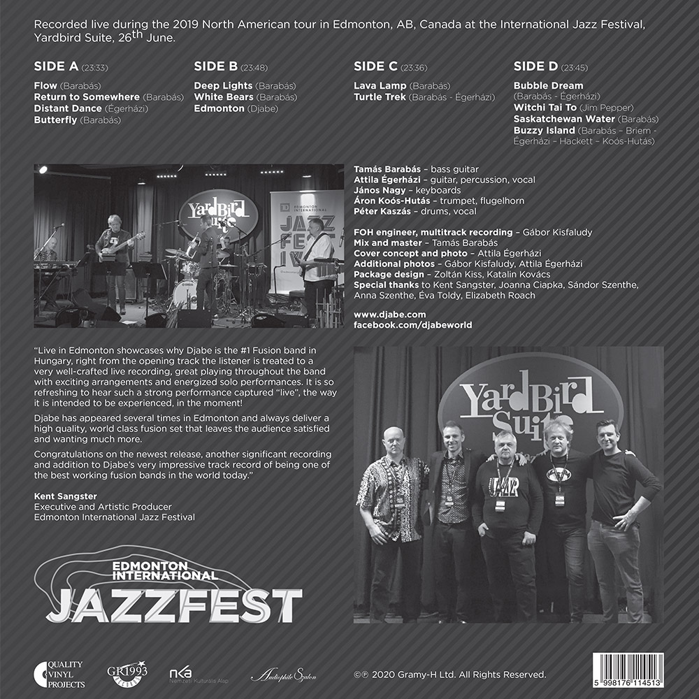 “Live in Edmonton” bizonyítja hogy a Djabe miért az első számú fúziós zenekar Magyarországon. A nyitószámtól kezdődően a hallgató egy nagyon jól kidolgozott koncertfelvételt kap, nagyszerű hangszeres játékot izgalmas hangszerelésekkel és energikus szólókkal. Nagyon üdítő ilyen erős és minőségi koncertfelvételt hallgatni, úgy, ahogy az akkor elhangzott.