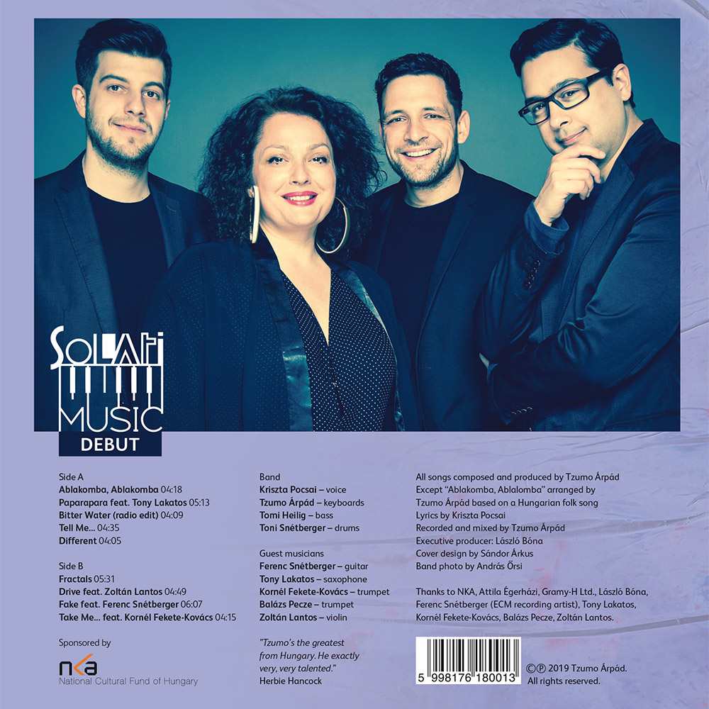 A jazz harmóniakészletét az Rn’B, Neo-Soul és Hip-Hop előremutató formavilágával és stílusjegyeivel ötvöző dalok zenéit kivétel nélkül Tzumo szerezte és hangszerelte, sőt, most megjelenő Debut című album stúdió-felvételét és az utómunkát is az ő neve fémjelzi. A számok szövegeit a SoLaTi énekesnője, Pocsai Kriszta írta. A BJC-ben rendszeresen koncertező zenekar – Heilig Tomi basszusgitáros és Toni Snétberger dobos – állandó tagjai mellett a különleges, mindössze 500 példányban gyártott “transparent blue” színű korongon több világsztár is közreműködik. Snétberger Ferenc a Fake című számban a tőle megszokottól eltérően klasszikus helyett jazz gitárt szólaltat meg. A világklasszis művész mellett egy másik nemzetközi rangú jazz zenész, az egyik legismertebb magyar származású szaxofonos, Tony Lakatos játéka is hallható.